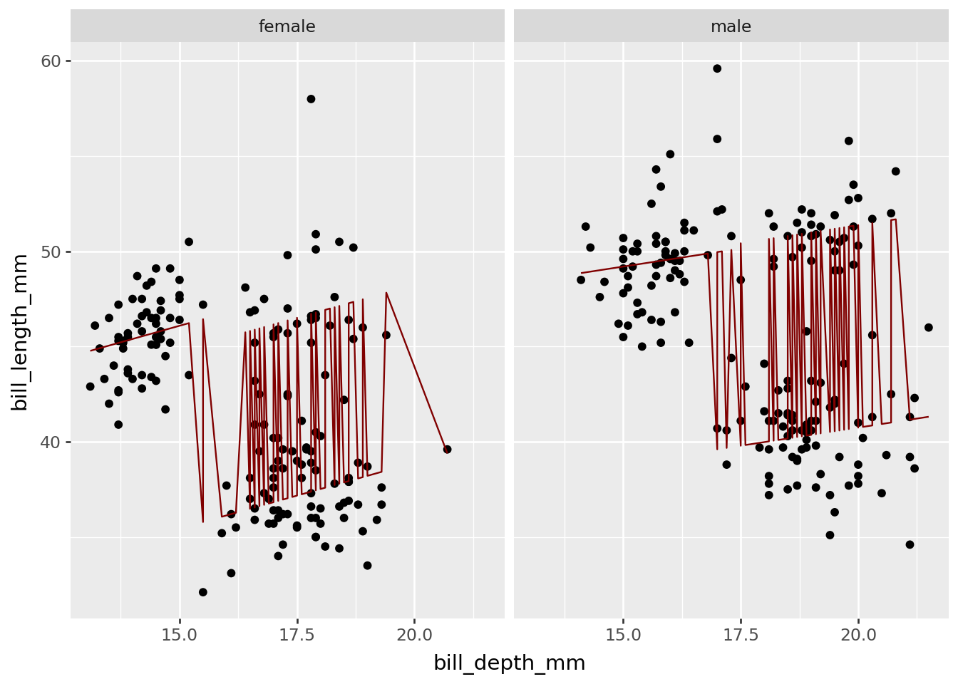 Note that because panel-wise (facet-wise) computation is specified, there are in fact, two separately estimated models for female and male. If the model is to be computed across all of the data, it’s worth considering layer-wise computation, i.e. specifying the compute_layer slot (not yet covered in these tutorials).